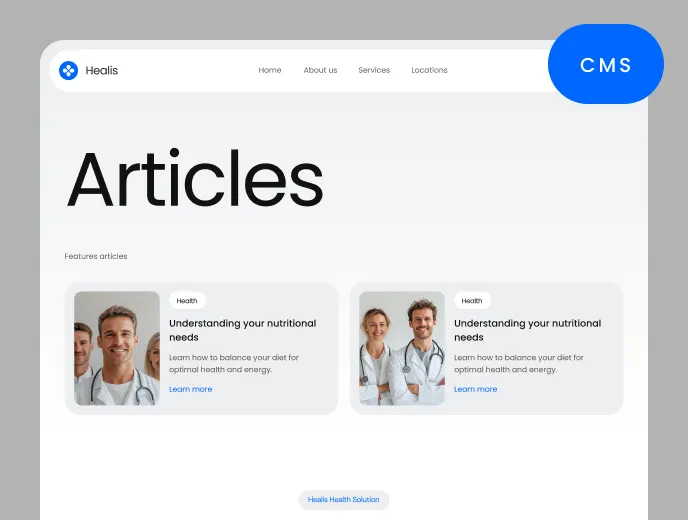 With a total of 3 different headers and footers, you can easily customize the Healis Webflow Template to fit your company needs and requirements.